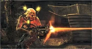 Hybrids make up the bulk of the Chimeran military. All Hybrids use the Bullseye and carry Hedgehog Grenades. They are sometimes led by Steelheads. Despite their low rank, they have relatively high hitpoints for a standard enemy, taking multiple headshots from most weapons, and will use their durability to close on the player's position while under fire, often charging forward while firing from the hip. They can melee the player at very close range, doing substantial damage. When killing NPCs they will instead use pre-set kill animations.