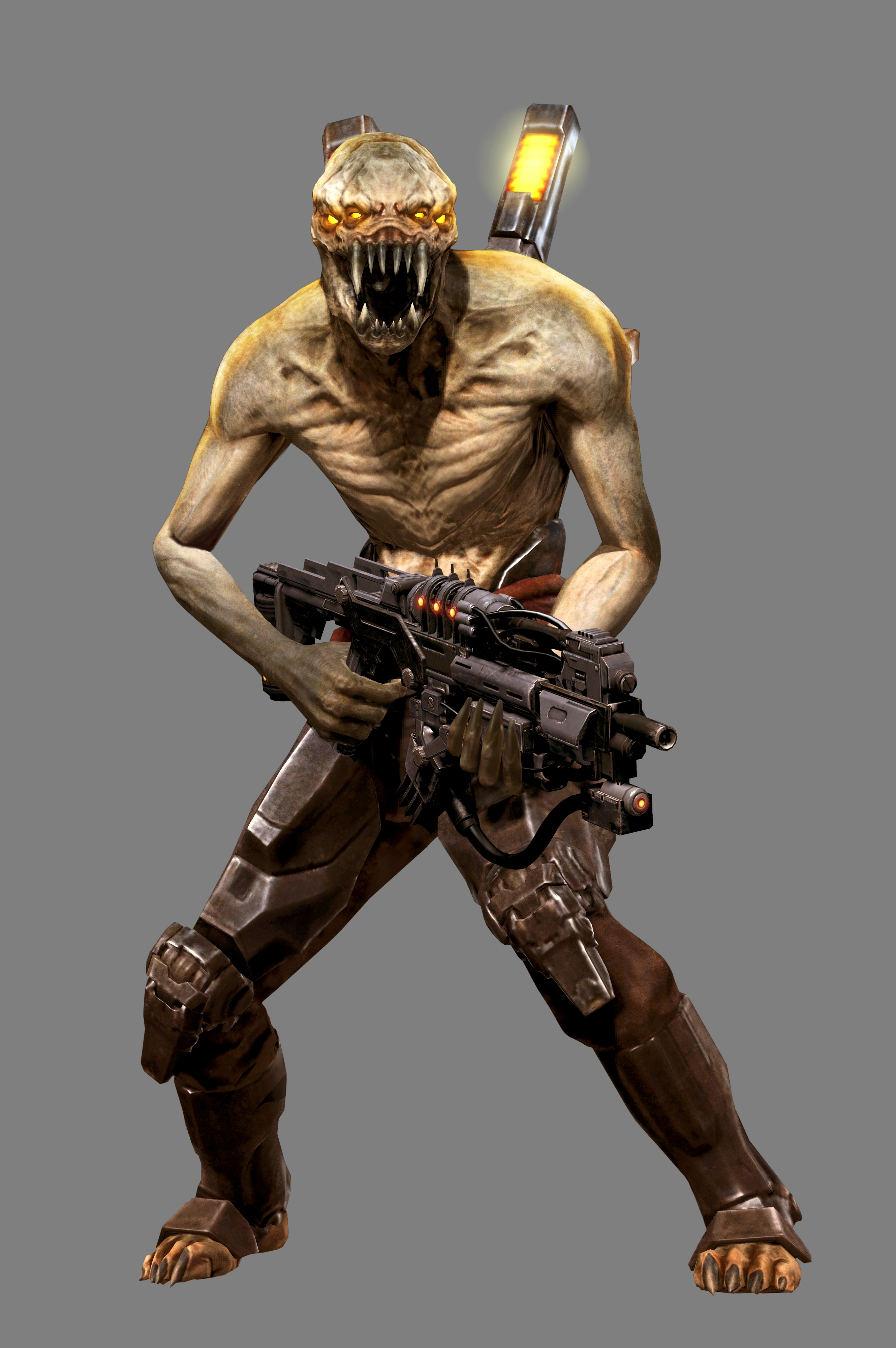 The rarest type, these Hybrids wear armor on their arms, legs and torso. They can be identified by four cylindrical cooling towers and their additional armor, and are usually only found around key locations important to the Chimera. They are exclusive to Resistance: Fall of Man.